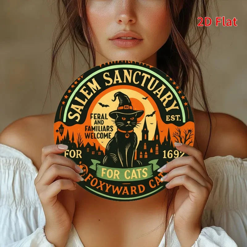 Salem Sanctuary Metal Wall Sign – Round 2D Flat Aluminum Holiday Vintage Sign